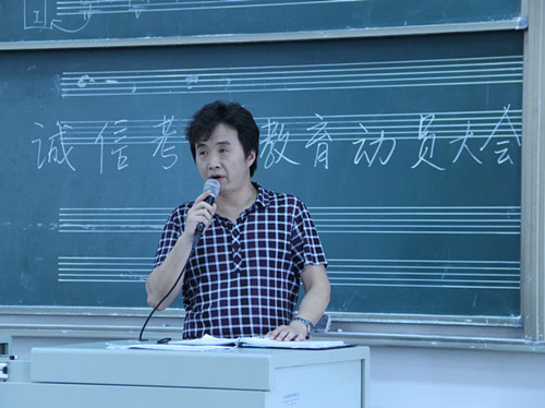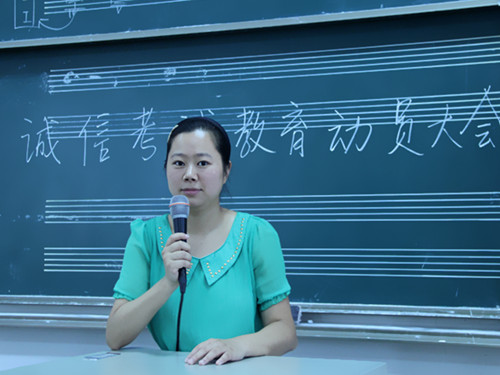 本网讯(通讯员 向倩倩)6月25日中午11点30时,由音乐学系学生会发起的"诚信考试"倡议动员会,在新校区教学楼B604室举行。